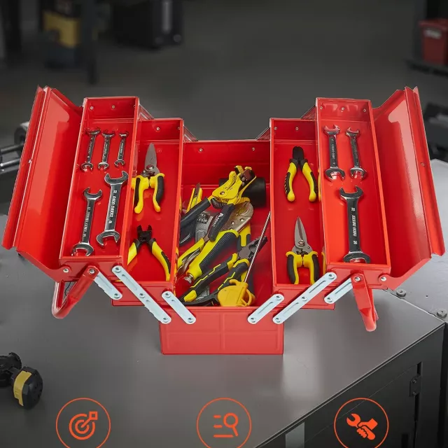 Its sturdy materials, clever folding layout, and easy portability make it ideal for technicians, mechanics, electricians, hobbyists, and anyone who wants their tools organized and ready to go. Use it in workshops, on job sites, or for on-the-go repairs — it adapts to your needs effortlessly. If you want a toolbox that works as hard as you do, this is the one to choose.