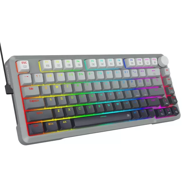 Experience next-level control with this ultra-responsive 75% mechanical gaming keyboard engineered for players who demand speed, accuracy, and complete customization. Designed with an 82-key compact layout, it frees up valuable desk space while delivering a powerful, immersive gaming feel. Its sturdy metal top plate adds stability and a premium touch, making every keystroke feel solid and satisfying.