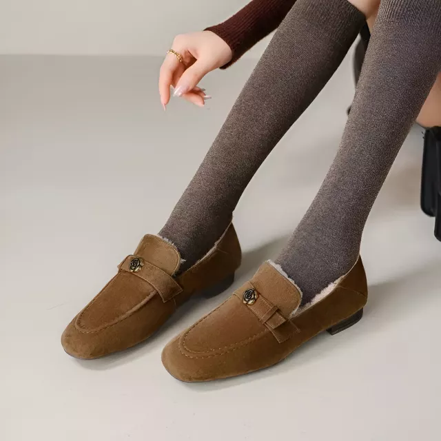 Step into the colder seasons with confidence and charm in these cozy autumn-winter suede loafers. Designed for women who love practical elegance, these shoes blend a classic retro look with modern comfort. Featuring a smooth round toe and a low 0.8-inch square heel, they offer an easy, relaxed fit that keeps your feet comfortable all day long. The soft kid suede upper adds a touch of luxury, while the genuine leather lining and pigskin insole provide a breathable, supportive feel with every step.