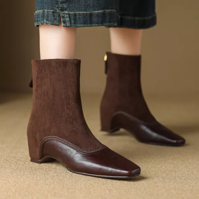 Crafted from high-quality genuine leather, these ankle boots offer lasting durability and a smooth, luxurious feel. The faux suede shaft adds texture and charm, while the plush interior keeps your feet cozy during chilly days. A polished zipper detail makes them easy to slip on and off, and the rubber outsole provides dependable traction for everyday wear. Designed to fit true to size, they offer reliable comfort and a flattering fit for all-day use.
